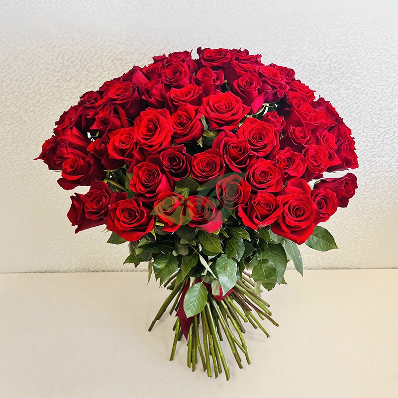 - Роза - 101 штука, цвет - красный, длина стебля - 70 см;