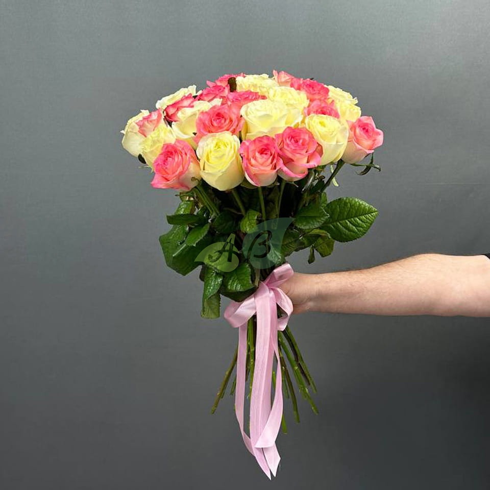 25 роз белого и розового цвета – лучший букет, достойный самой красивой невесты. Роскошь этих цветов можно дополнить сладким подарком или набором косметики и заказать доставку прямо в руки. Тогда его можно подарить не только на свадьбу, но и на 8 марта или любой другой праздник.