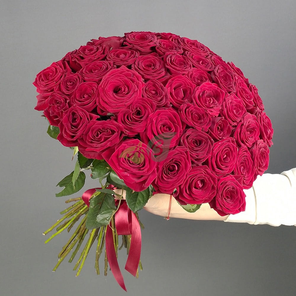 • Роза - 45 штук, цвет - красный, длина стебля - 60 см;