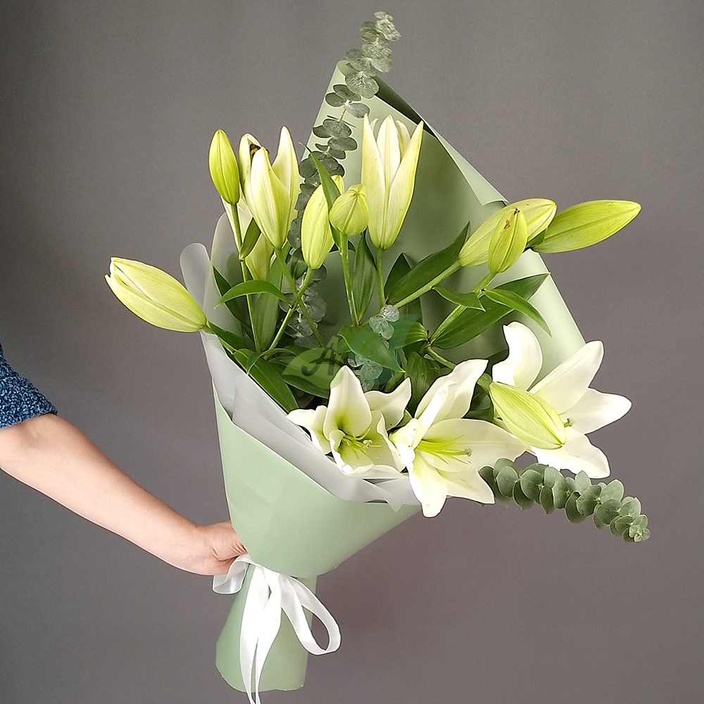 • Лилия - 3 штуки, цвет - белый;